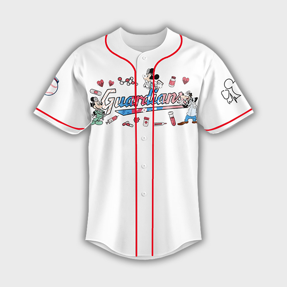 Nurses Night is a special event that honors the hard work and dedication of healthcare professionals, and this jersey captures the heart of that celebration. The inclusion of Mickey Mouse, a timeless Disney figure loved by all generations, adds a touch of nostalgia and joy to the night. The Guardians, one of baseball’s most storied teams, has always been dedicated to community outreach, and this collaboration with Disney further enhances the cultural relevance of the event. This jersey serves as a memorable keepsake for both baseball fans and those who support the nursing community.